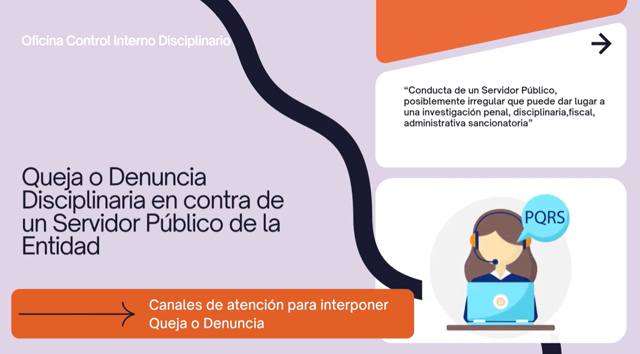 Al diligenciar el formulario elige en tipo de solicitud la opción “Quejas o Denuncia Disciplinaria En Contra De Un Servidor Público De La Entidad”